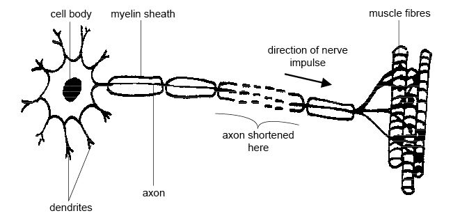 The axon is the conductive, long fiber that carries the nervous impulse along the motor neuron.