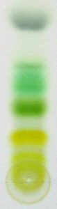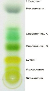 The pigments are added to chromatography paper which is placed in a solvent. The solvent dissolves the pigments, and the more soluble the pigment the further up the chromatography paper it will move. This can be converted into an Rf value, a way to then compare and identify pigments in chromatography, using the formula below.