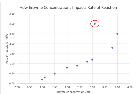 | Enzyme concentration / mol | Rate of reaction / ml/s |