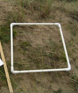 Quadrats are used to sample slow-moving or non-motile organisms (such as plants). A quadrat is a frame typically 0.5m x 0.5m in size and can be gridded or open.