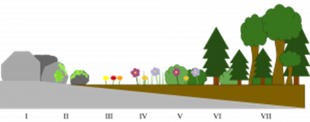 This is the change in an ecological community over time. Primary succession starts with a pioneer species colonizing bare rock or sand. Pioneer species, such as lichen, are adapted to survive harsh abiotic factors, and through their death and decomposition, they change the abiotic factors to become less harsh and form a thin layer of soil, humus. Mosses and smaller plants can now survive, and they further increase the depth and nutrient content of the soil.