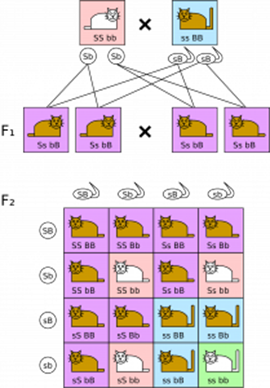 Below is an example of a genetic cross showing the inheritance of two genes at the same time.