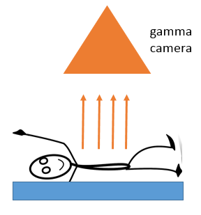 To use a scan from a gamma camera, the patient swallows a gamma tracer or has it injected into the bloodstream. The camera detects the gamma radiation emitted from the body, producing an image of the body parts containing the tracer.