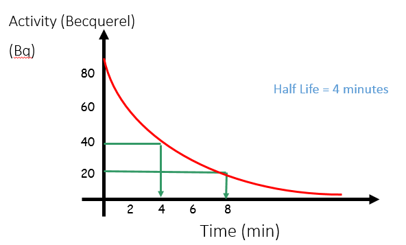 If the half-life is 4 minutes, then every 4 minutes, the activity will decrease by half.