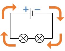 Current is the flow of electrons (charged particles) around a circuit. Electrons are repelled from the negative end of the cell and attracted to the positive end.