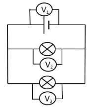 Potential Difference is measured in Volts (and commonly called voltage). It is measured using a voltmeter which is placed in parallel with the component across which it is measuring the voltage.