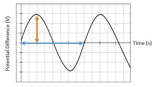 - Frequency = 50 Hz (changes direction 50 times per second)