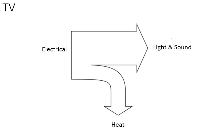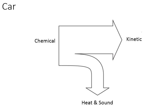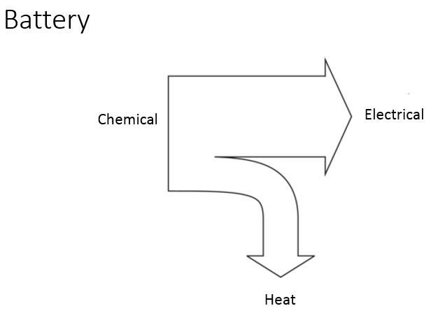- 'Wasted' energy is shown by the arrow curving away from the useful energy