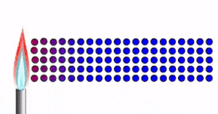 Metals are good conductors of electricity. As well as vibrations being passed from particle to particle, as described above, metals also have ‘free’ electrons that can carry energy through the solid. This means that thermal energy conducts faster through metals than other materials.
