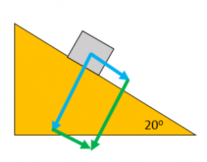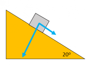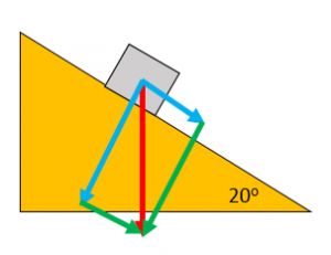 A car of weight 10kN is parked on an uphill road. The road is inclined at an angle of 20o. Find the component of the car’s weight that acts down the slope.