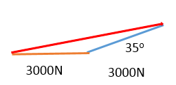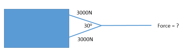A tow rope is attached to a car at two points 1m apart at 35o to each other. If the pull on each attachment is 3000N, what is the force on the main tow rope?