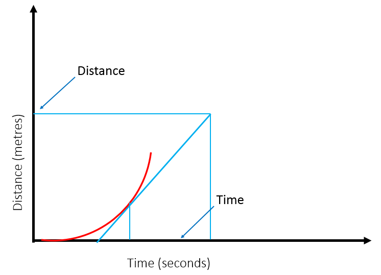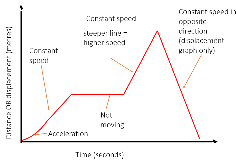 A velocity-time graph can look very similar to a distance-time graph but it represents different motion, so make sure you check the axes of the graph on any question so you know which one you are dealing with.