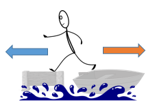 A man of mass 80kg jumps from a boat of mass 8000kg to the pier at a speed of 4m/s. Describe the motion of the boat.