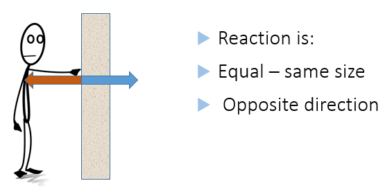 For example, if you push against a wall, the wall must be producing an equal and opposite force on you; otherwise, the wall would fall over or your hand would go through the wall.