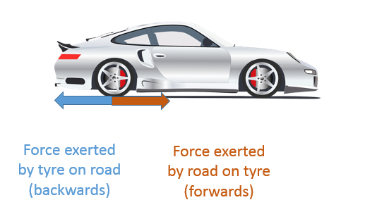 - A car accelerates forwards. What direction is the force that the driver exerts on the car?
