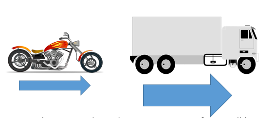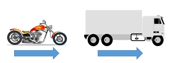 For example, if the same force is applied to these vehicles, the motorbike will accelerate faster due to its smaller mass.