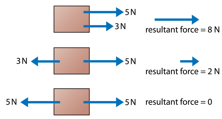 The resultant force is the sum of all the forces acting on an object.