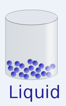 - Weaker forces of attraction between particles – enough to keep them together, but not enough to keep them in fixed positions