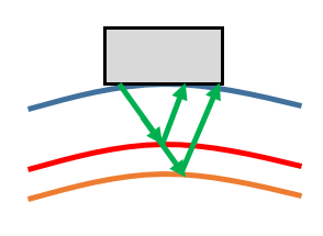 The time taken for the reflected sound to arrive back at the detector is used to calculate depth.